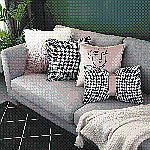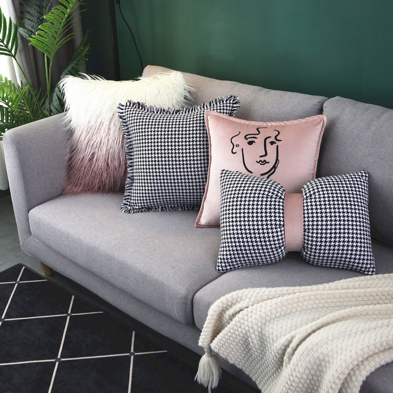 千鸟格粉色组抱枕套ins沙发长垫毛靠垫床头靠背垫