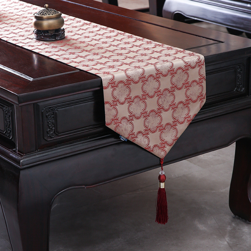 茶几桌旗新中式禅意茶桌茶台布艺长条桌布红色茶布