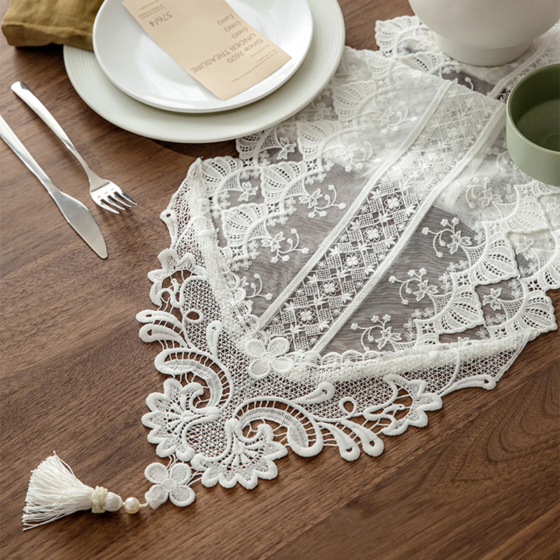 美式北欧白色蕾丝桌旗长条桌布桌旗
