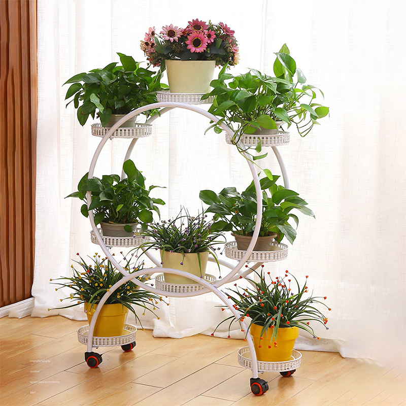 花架置物架铁艺带轮落地式花盆架客厅阳台花架子