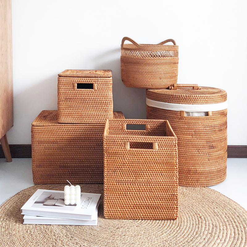 越南手工藤编收纳筐零食盒桌面编织框脏衣服篮子竹编