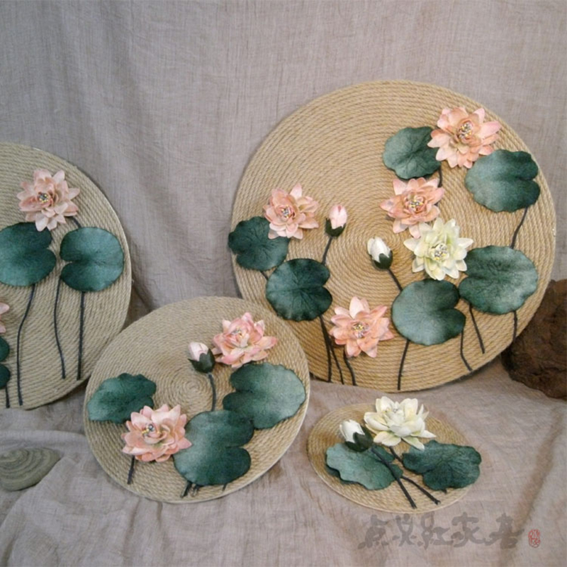 仿真布艺麻绳圆形装饰画壁饰干花墙饰