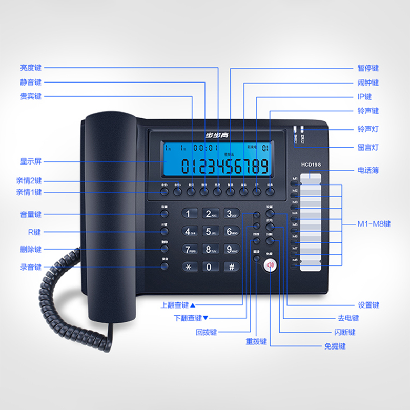 步步高电话机自动录音电话HCD198电脑拨号留言