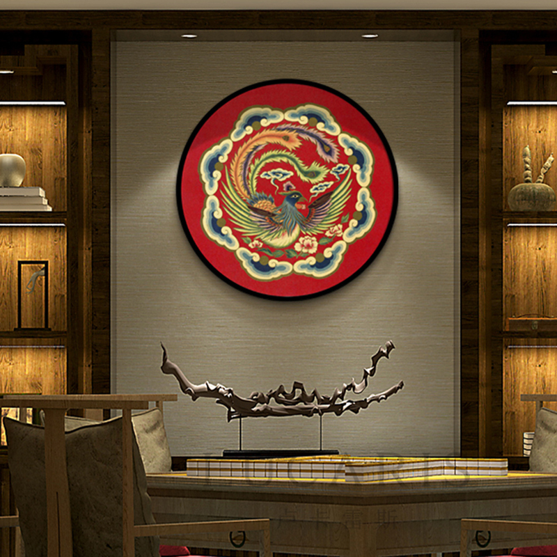 吉瑞祥年 新中式装饰画龙凤图腾古典壁画书房玄关圆形饰品