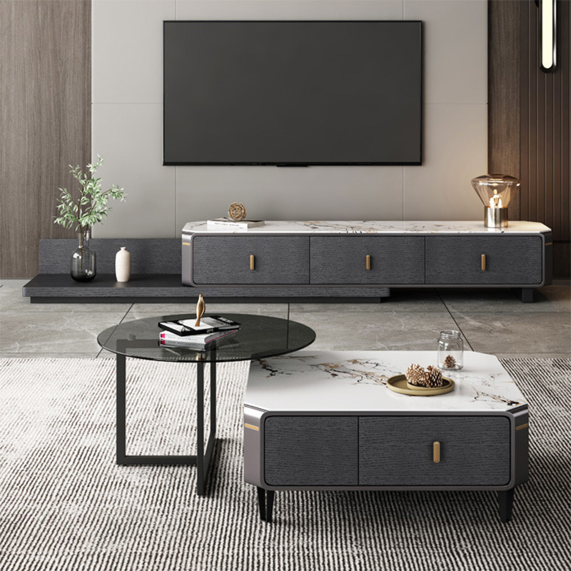 北欧小户型岩板茶几电视柜组合现代简约客厅拉伸电视柜茶几