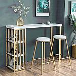 简约现代实木休闲吧台家用隔断靠背桌椅组合金色铁艺酒吧椅高脚凳
