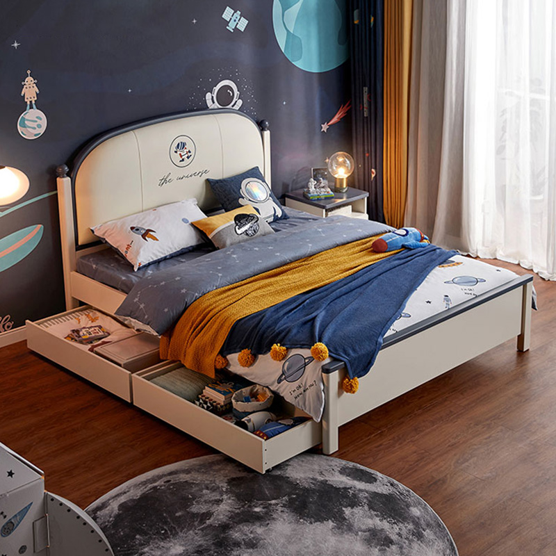儿童床男孩床1.5米青少年单人床小户型创意实木皮床