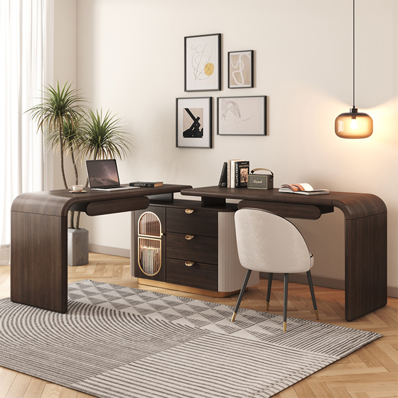 实木转角书桌双人轻奢现代书房拐角电脑桌角落写字台家用伸缩桌子