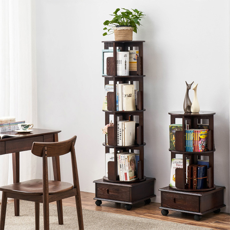 360度旋转书架家用可移动书架带轮全实木柜置物架多层办公室简易书架落地墙角转角立式书架
