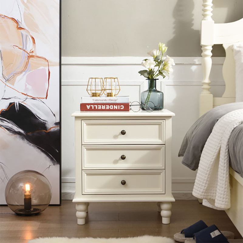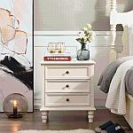 美式实木床头柜简约白色现代卧室床边柜简易储物柜三斗抽屉柜