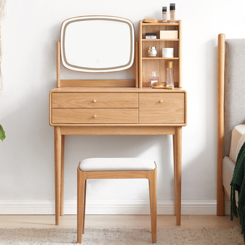 实木梳妆台收纳柜一体北欧卧室化妆桌橡木现代简约化妆台