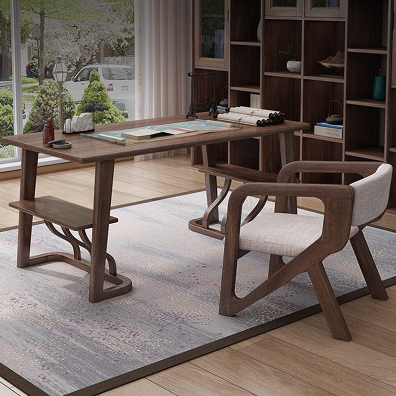 新中式胡桃木书桌实木书房家具组合现代办公书法桌写字台