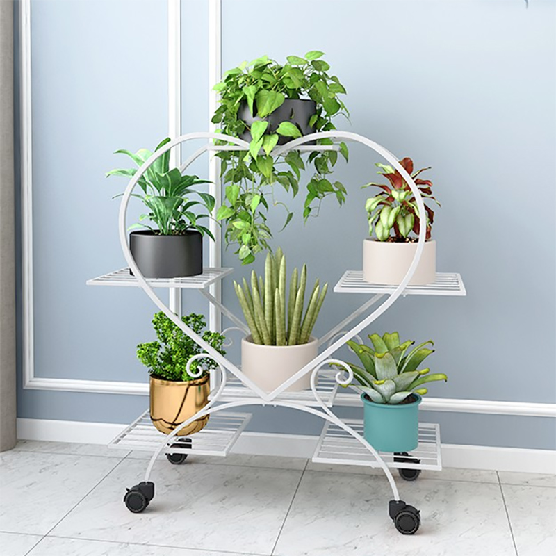 心形绿萝花盆架客厅阳台卧室花架子室内家用置物铁艺多层收纳省空间现代简约带刹车轮落地式花架