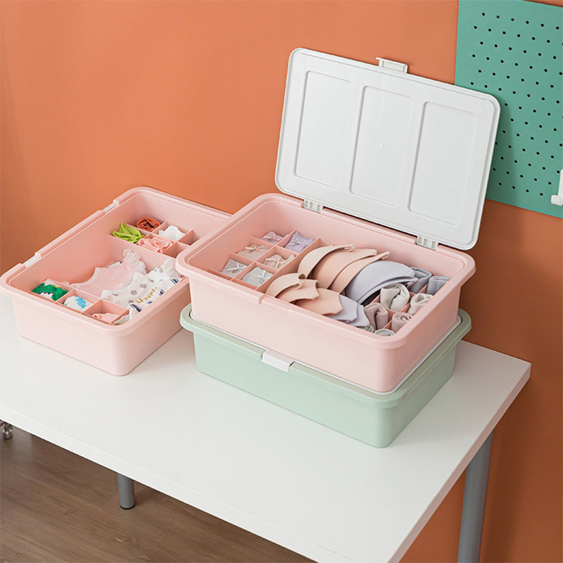 内衣收纳盒家用文胸内裤袜子整理箱大容量塑料加大加厚学生宿舍衣柜内衣裤三合一分格分类带盖收纳盒子