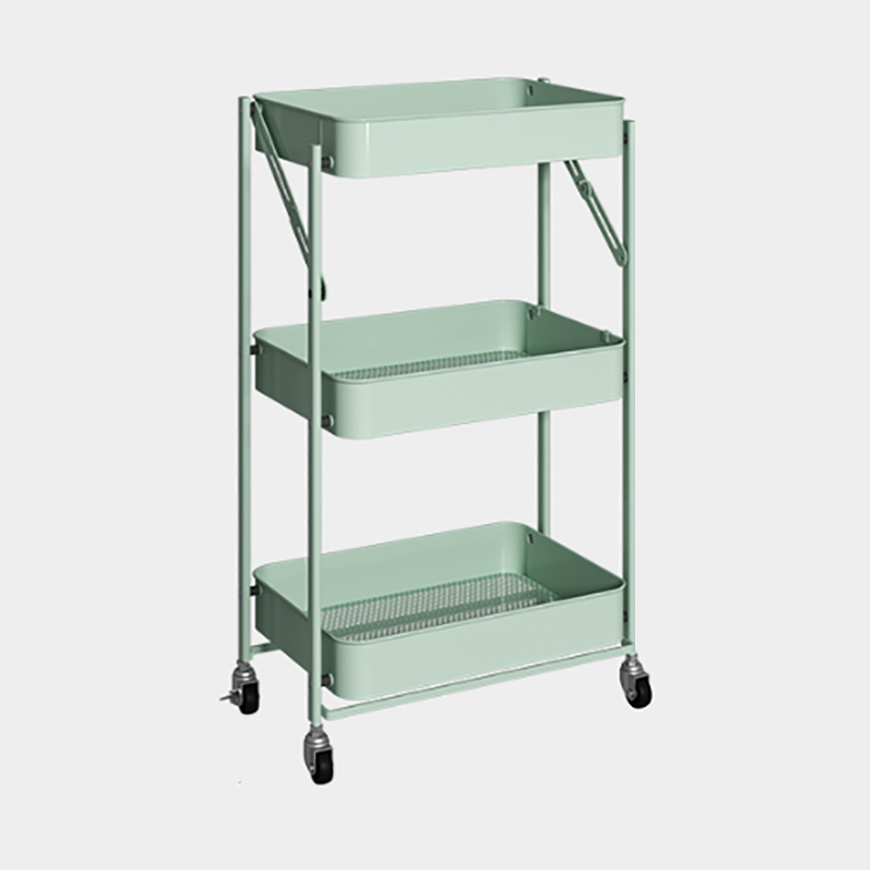 厨房置物架三层免安装置物架折叠小推车厨房储物架落地架子