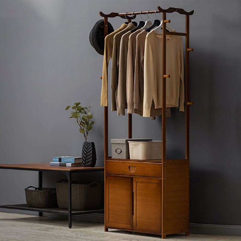 简易多层带抽屉落地衣帽架带裤架挂衣架卧家用室内置物架立式