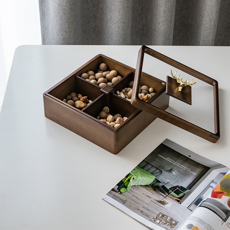 实木果盒新中式果盘糖果盒客厅家用分格带盖坚果盘干果零食收纳盒