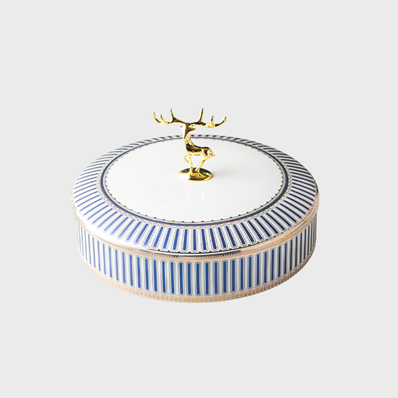 创意简约客厅干果盘美式家用轻奢陶瓷带盖分格糖果零食盘