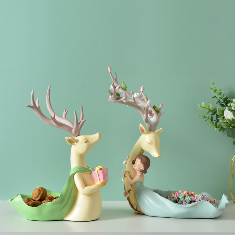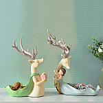 进门女孩鹿摆件门口玄关钥匙ins饰品托盘收纳零食前台放糖果盘