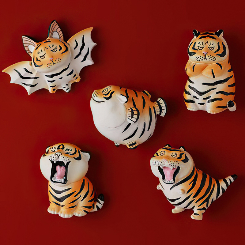 中国风老虎冰箱贴磁贴树脂婚礼布置动物吸铁石