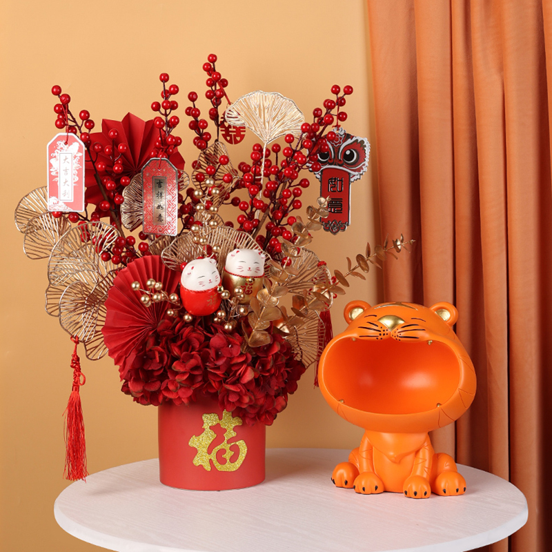 福桶红果发财果仿真花摆件客厅摆设花冬青装饰花