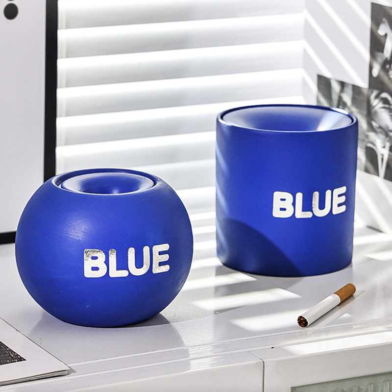 简约陶瓷烟灰缸克莱因蓝办公现代家用烟缸防风小摆件