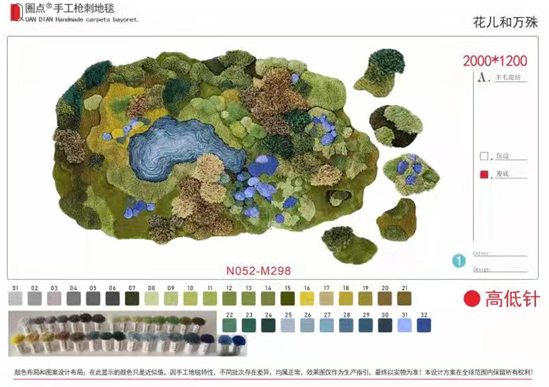 圈点L22057纯手工苔藓森林羊毛地毯可定制客厅茶几卧室床边地毯厂家