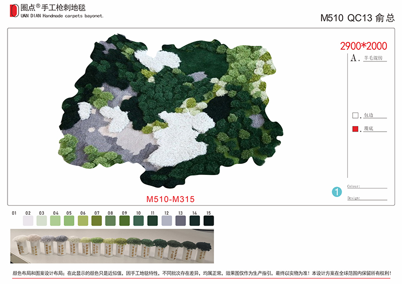 圈点M0510纯手工可定制羊毛毯苔藓森林地毯客厅卧室茶几现代ins轻奢展厅展示