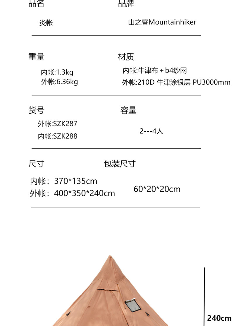 山之客炎帐帐篷户外露营多人帐篷大帐篷加厚防雨