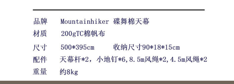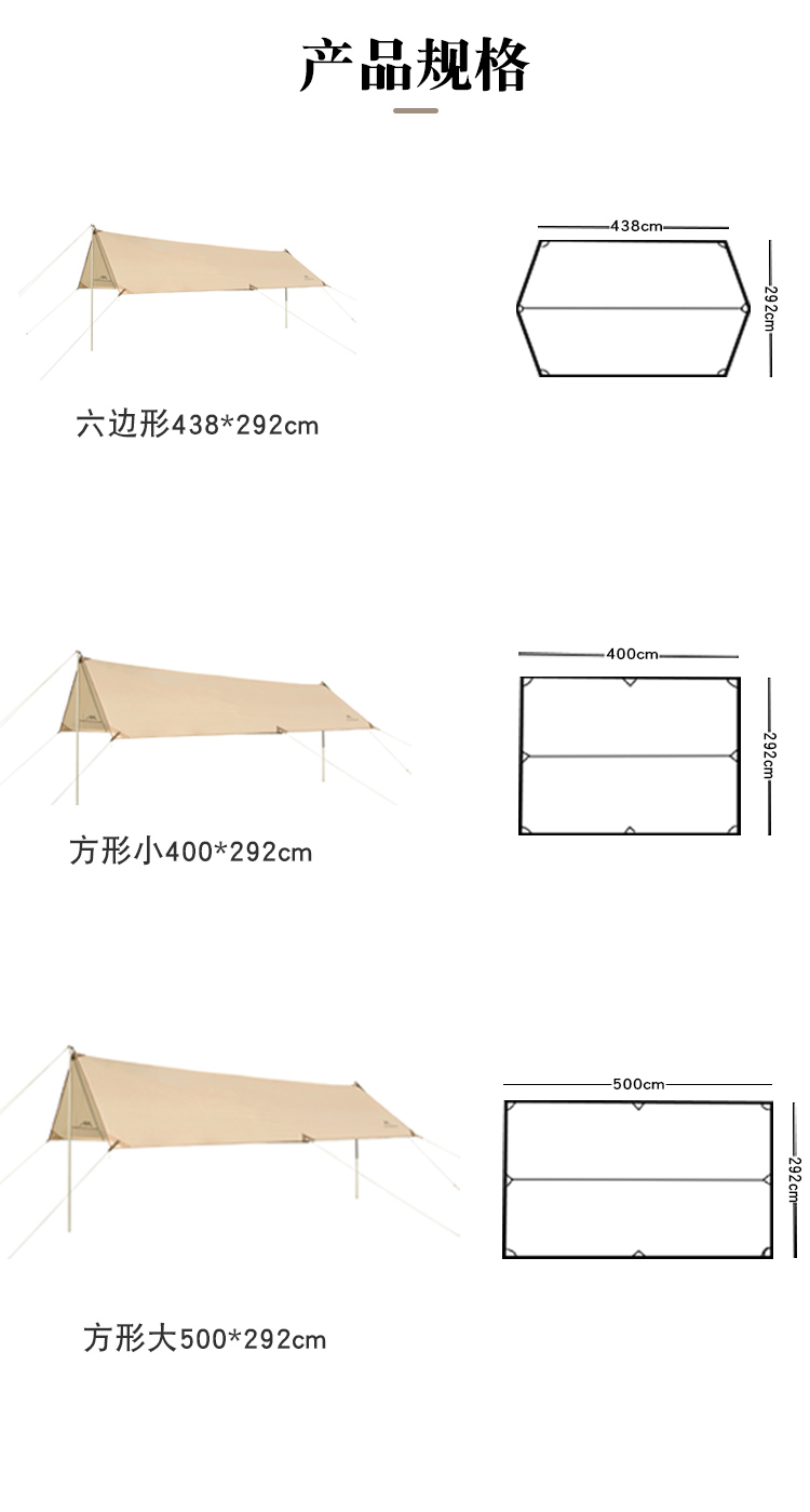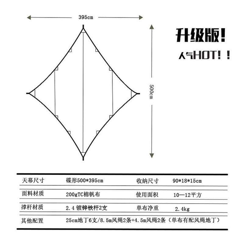 山之客天幕棉布帐篷防雨防晒牛津布蝶形户外遮阳棚自驾游露营黑胶