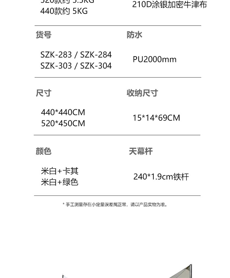 山之客飞云天幕棉布防雨防晒牛津布户外遮阳棚自驾游露营