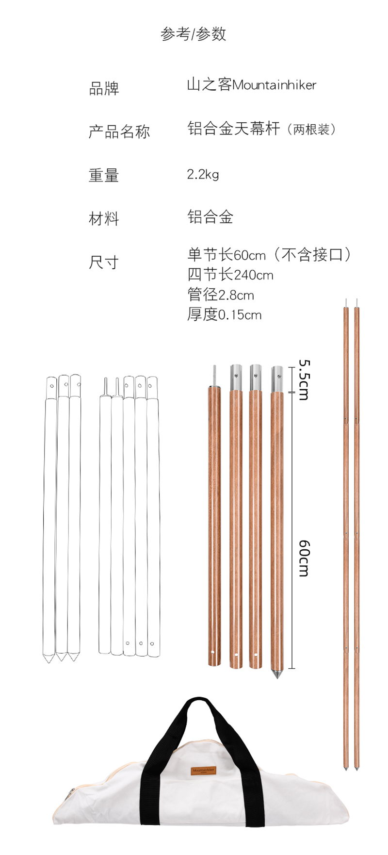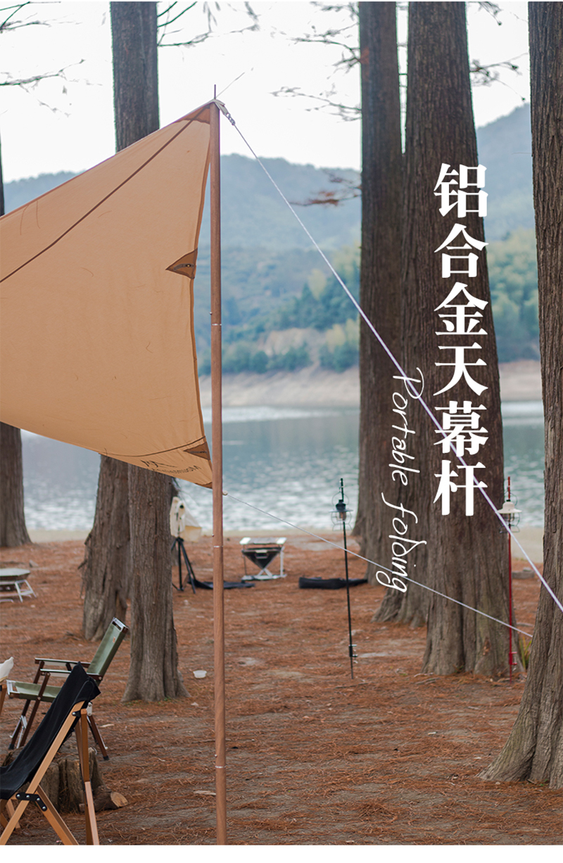 户外天幕杆折叠可调节帐篷支撑杆铝合金收缩天幕杆露营野营便携式