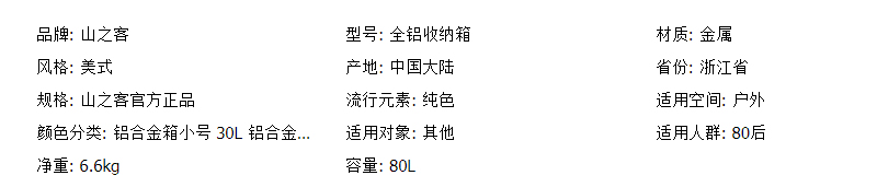 山之客户外收纳箱铝合金开口箱大容量露营野营越野车载箱日式家用