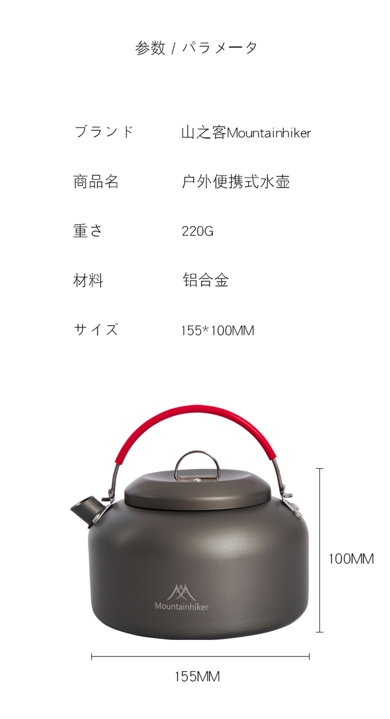 山之客户外水壶铝合金自驾游超轻野炊茶壶烧水壶泡茶1.4升咖啡壶