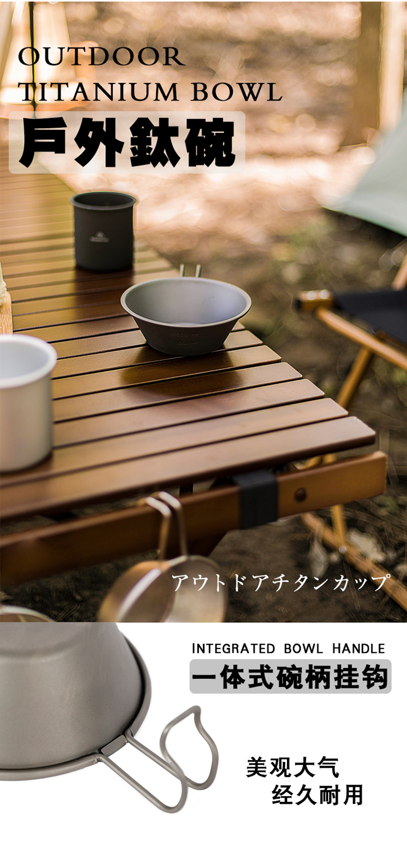 山之客纯钛水杯碗户外折叠钛杯钛碗可烧水野营便携式野餐餐具套装
