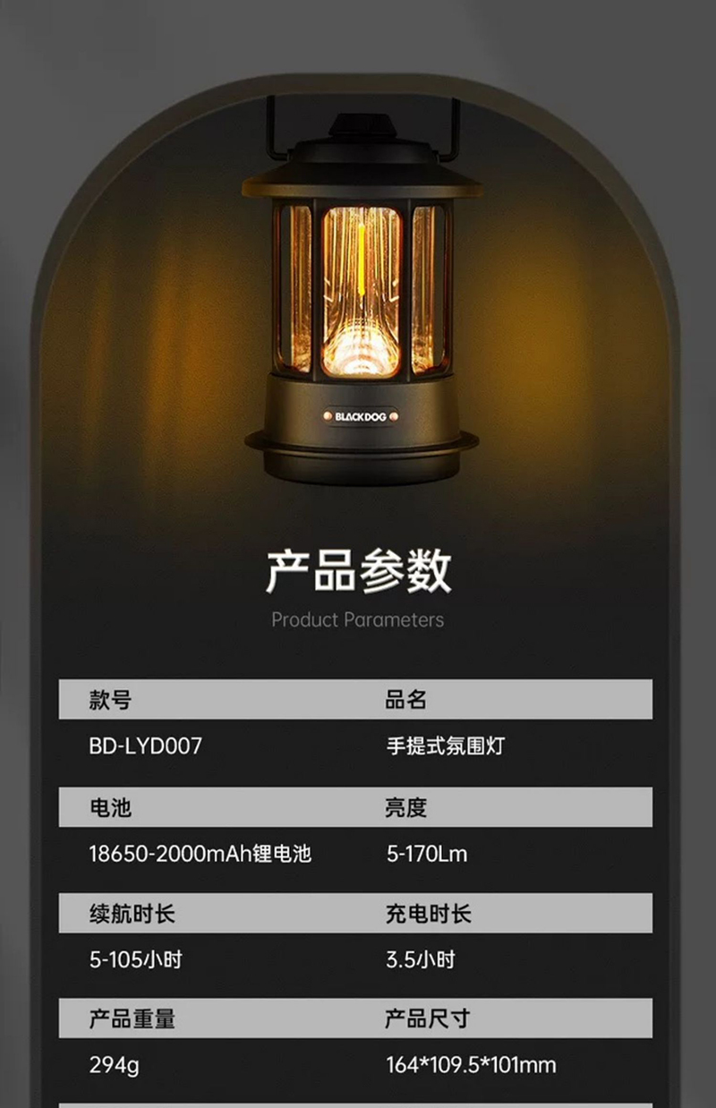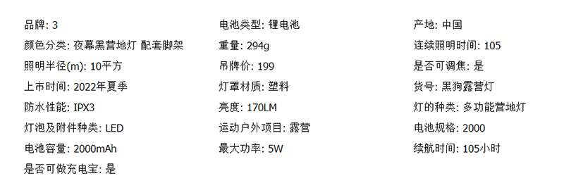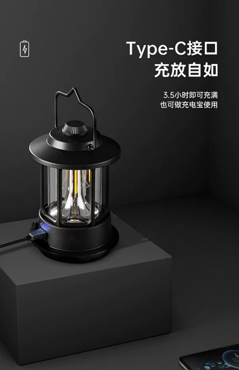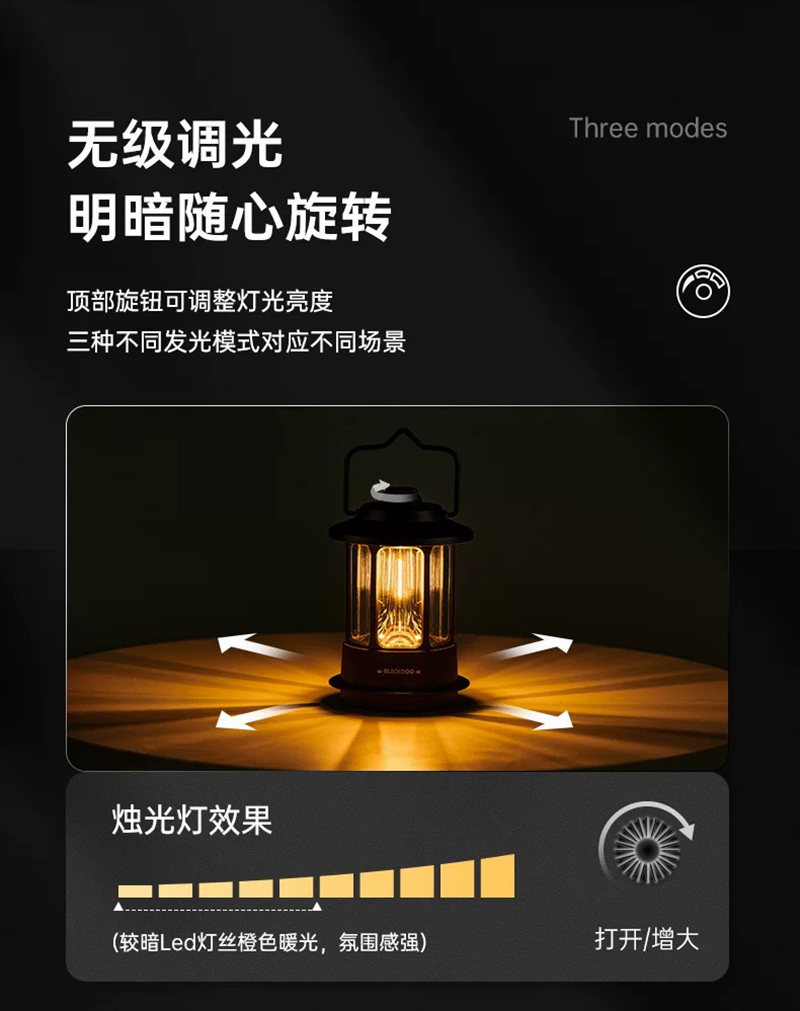 黑化风营地灯露营氛围灯手提野营帐篷灯防水无极调光超长续航脚架