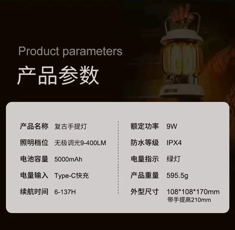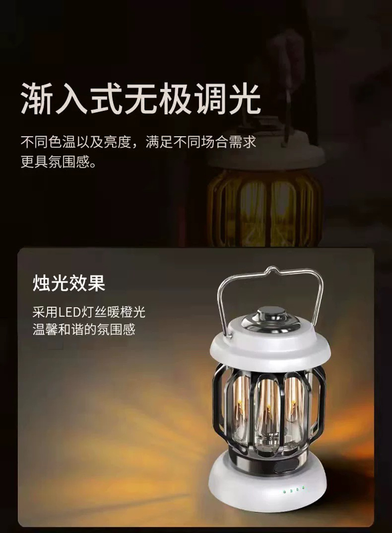 户外营地灯帐篷灯露营营地灯充电LED超长续航防水无极调光复古