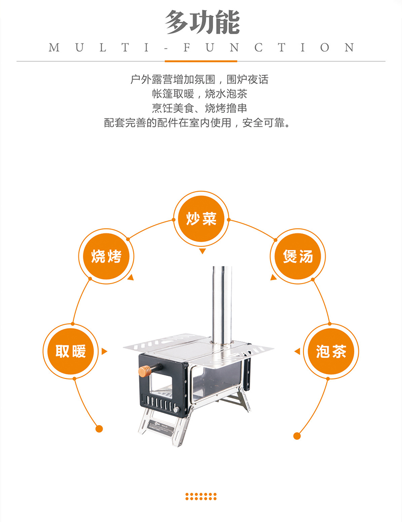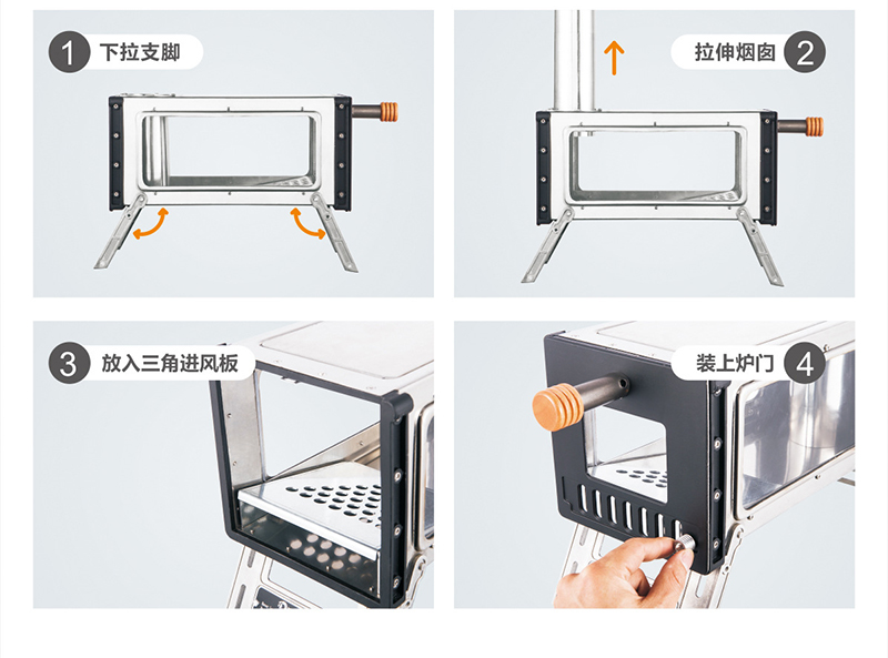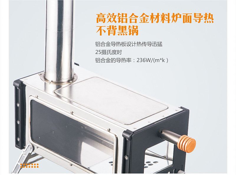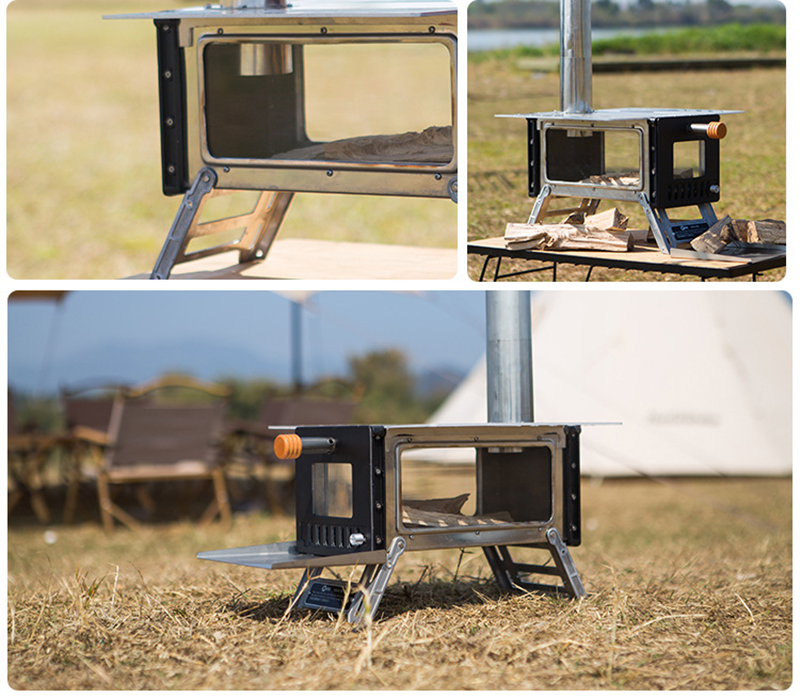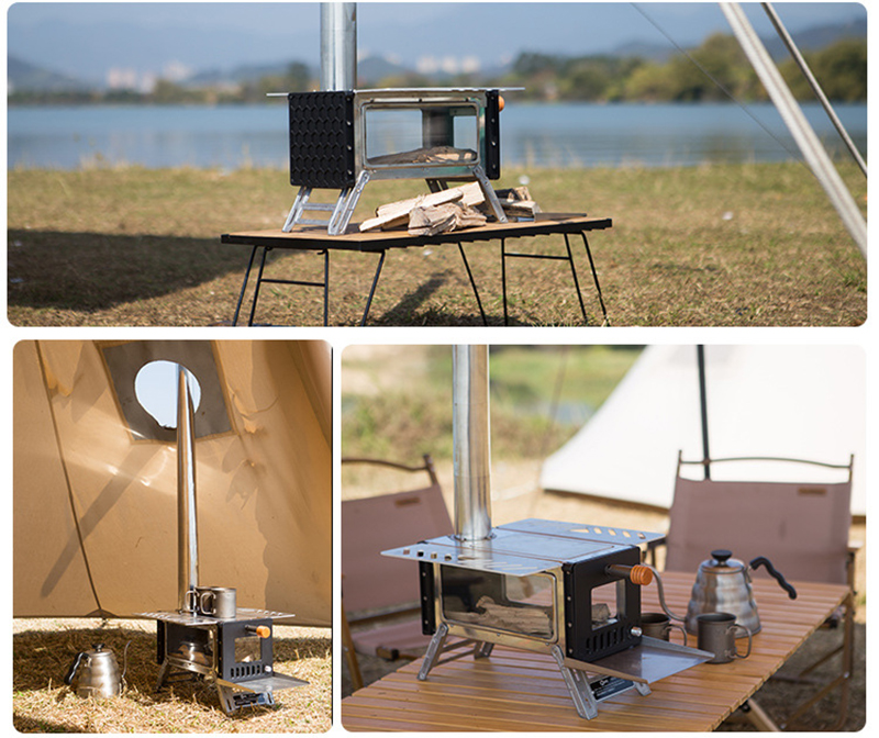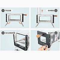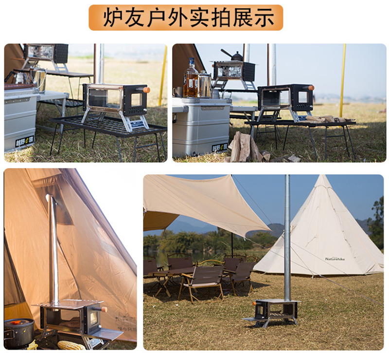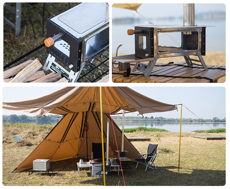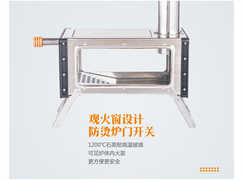 撼途帐篷炉迷你便携多用柴火炉户外露营炉具304不锈钢大火力侧窗