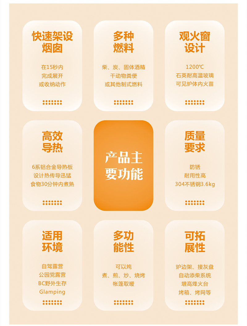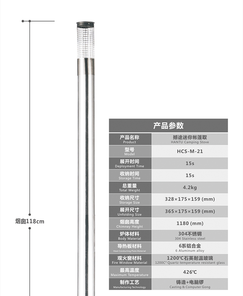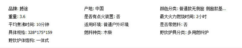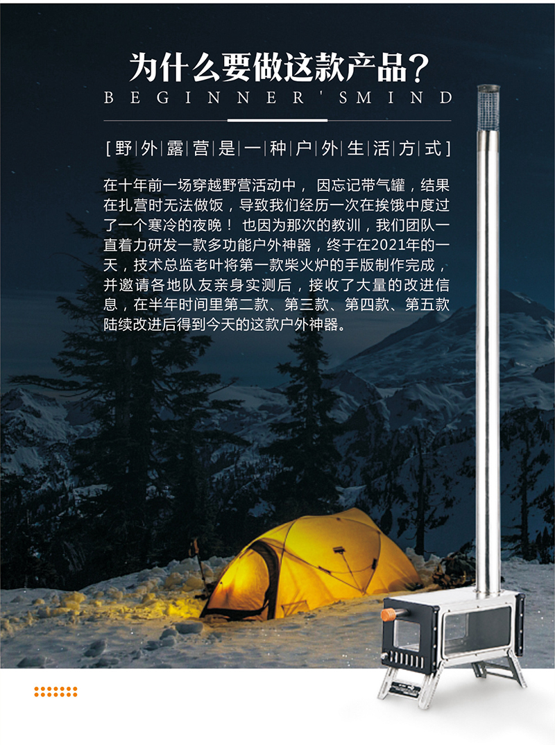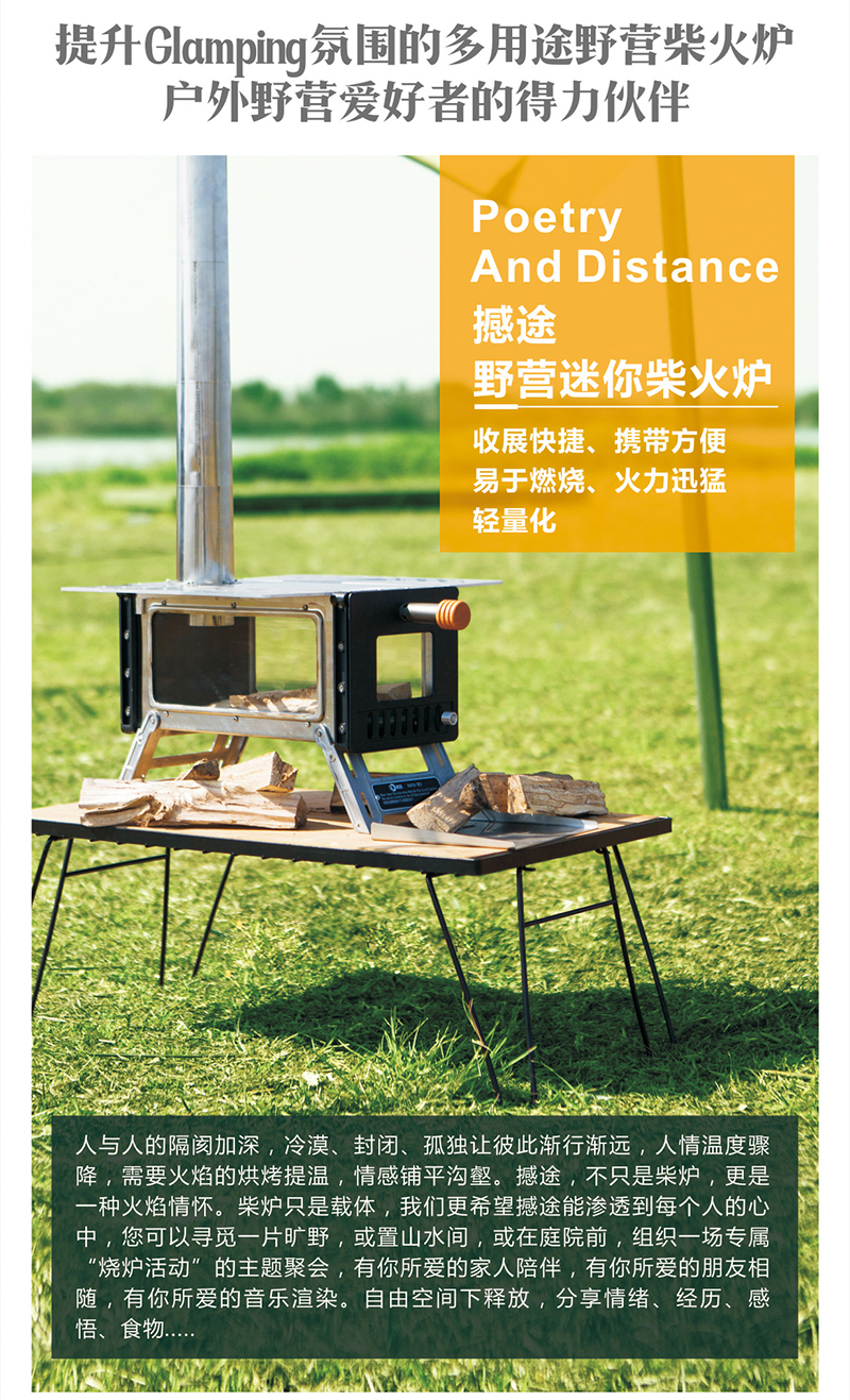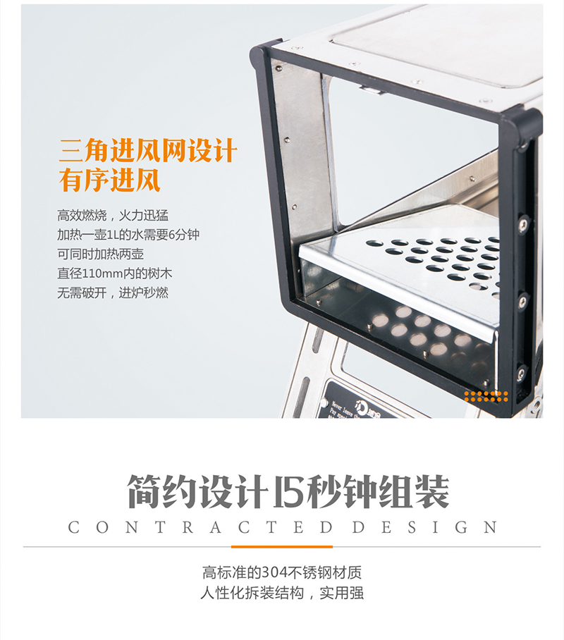 撼途帐篷炉迷你便携多用柴火炉户外露营炉具304不锈钢大火力侧窗