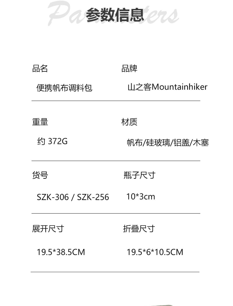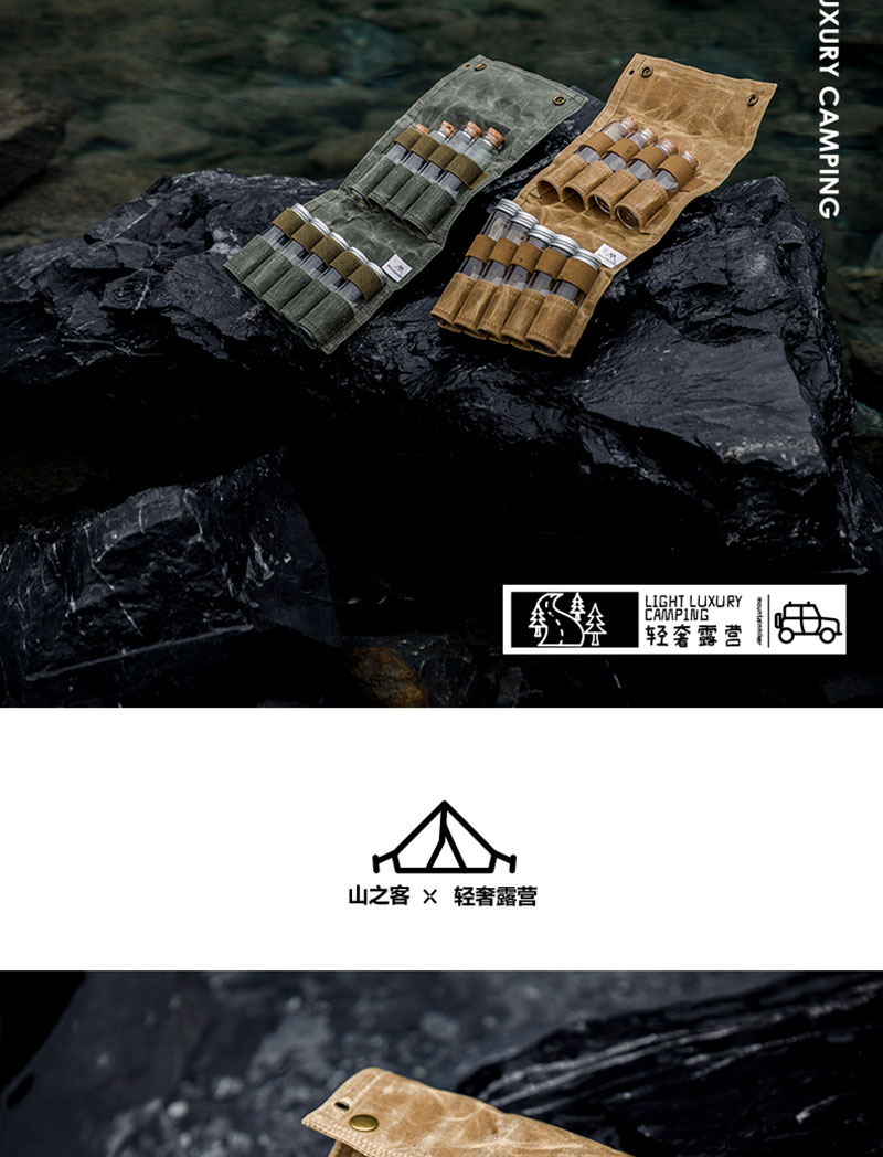 山之客户外野炊调料瓶收纳包帆布折叠收纳密封防潮