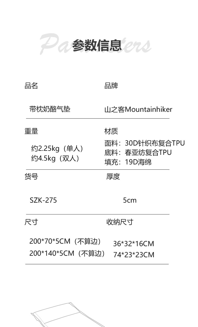 山之客户外带枕奶酪气垫帐篷睡垫奶酪垫露营防潮垫床垫露营野营