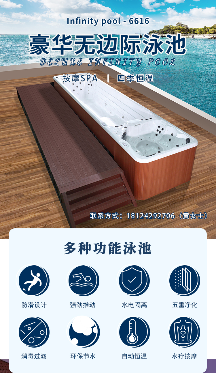 亚克力无边际游泳池户外大型冲浪按摩智能调速花园私人恒温游泳池