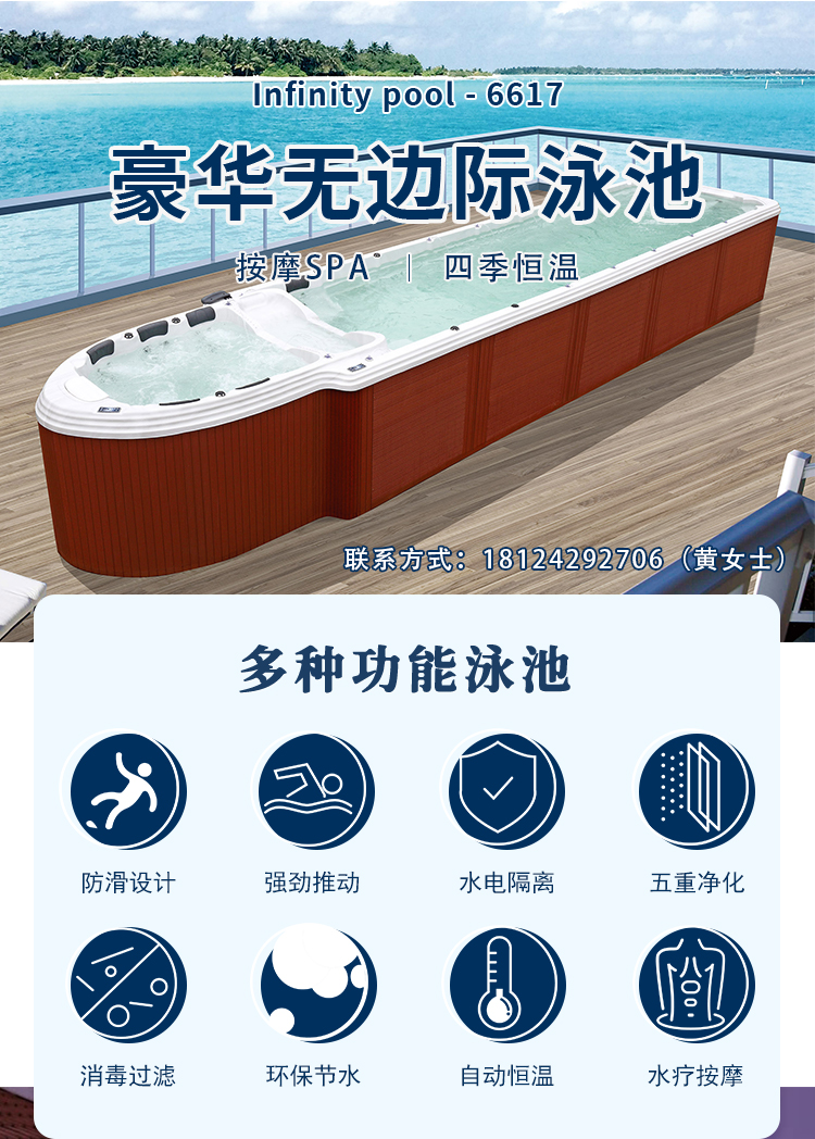 别墅庭院楼顶无边际游泳池室内外私人恒温冲浪智能成品无尽头泳池