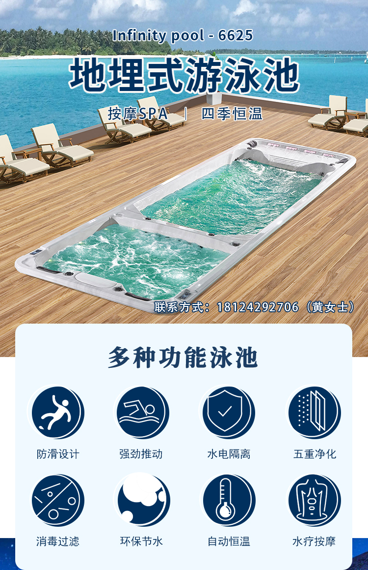 无边际游泳池别墅户外家用室内泳池智能冲浪亚克力私人恒温游泳池