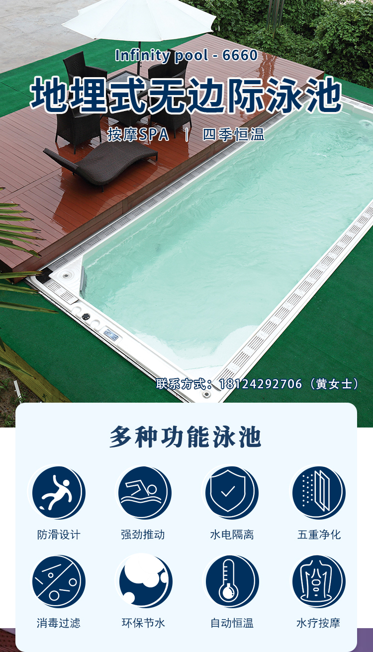 户外恒温无边际游泳池家用室内私人别墅智能冲浪成品亚克力游泳池