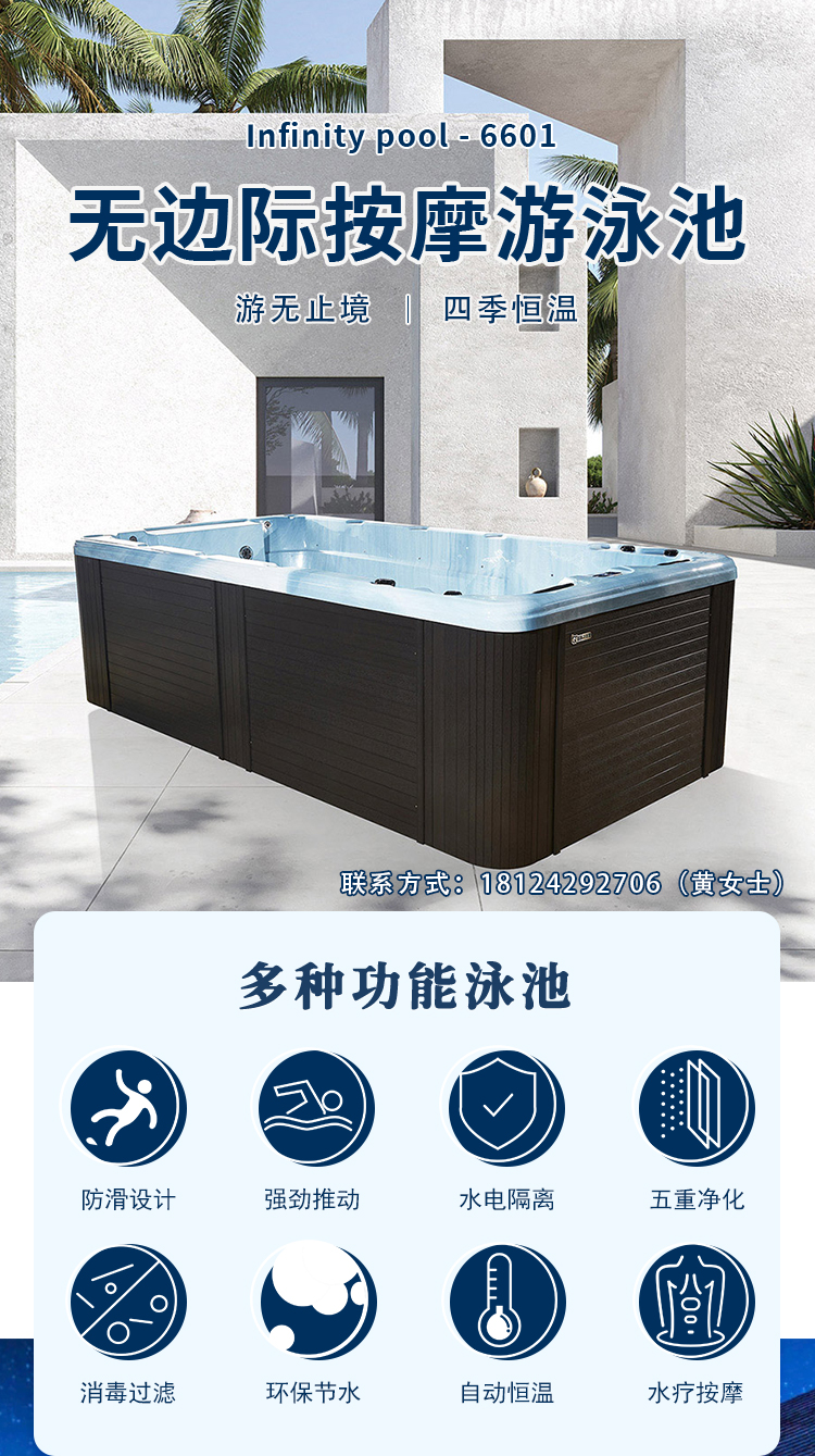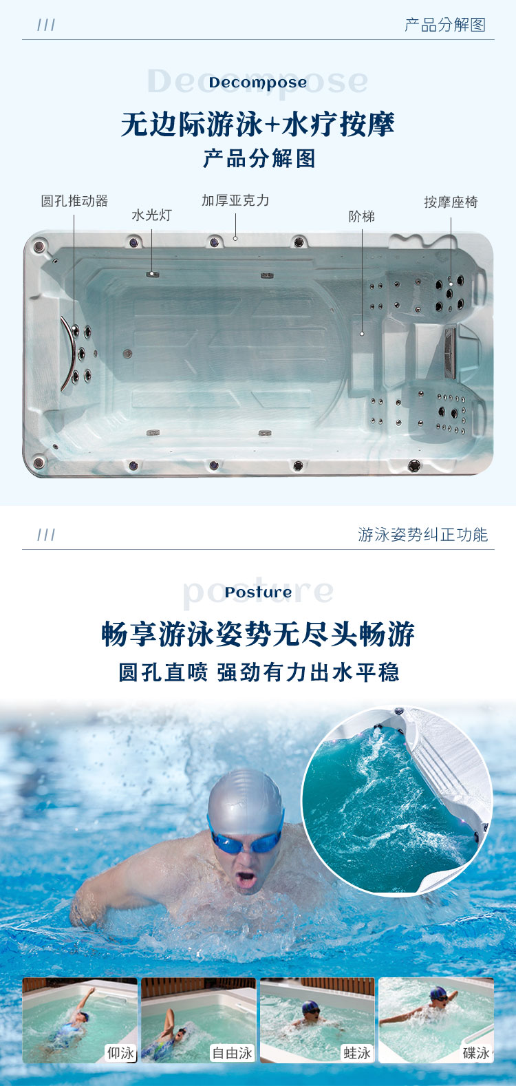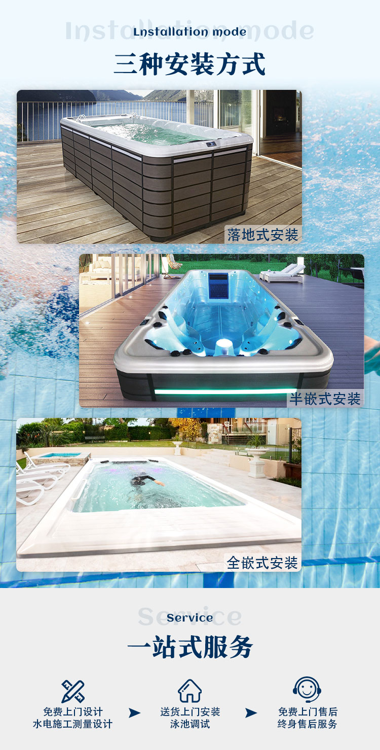 无边际游泳池家用训练健身冲浪无尽头游泳机别墅户外亚克力成品池
