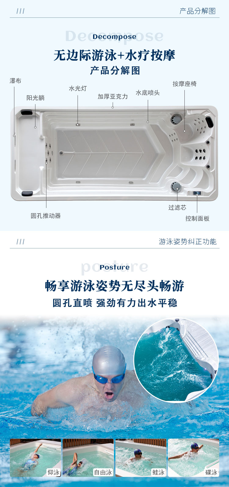 亚克力无边际游泳池别墅家用室外阳台恒温无尽头冲浪健身智能泳池
