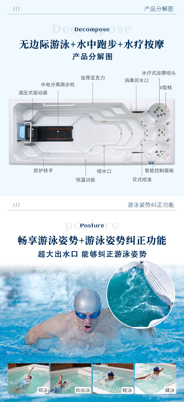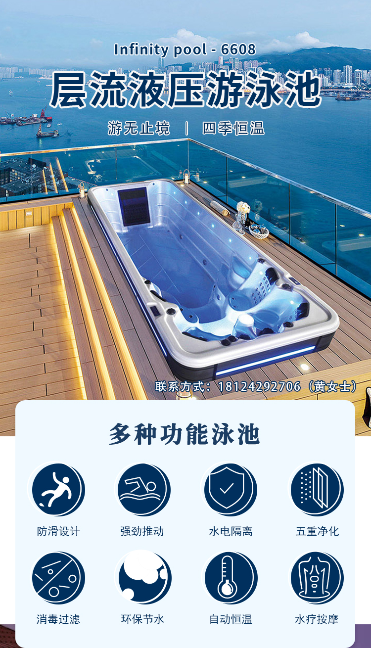 无边际泳池智能恒温加热别墅私人冲浪按摩庭院户外室内外亚克力池