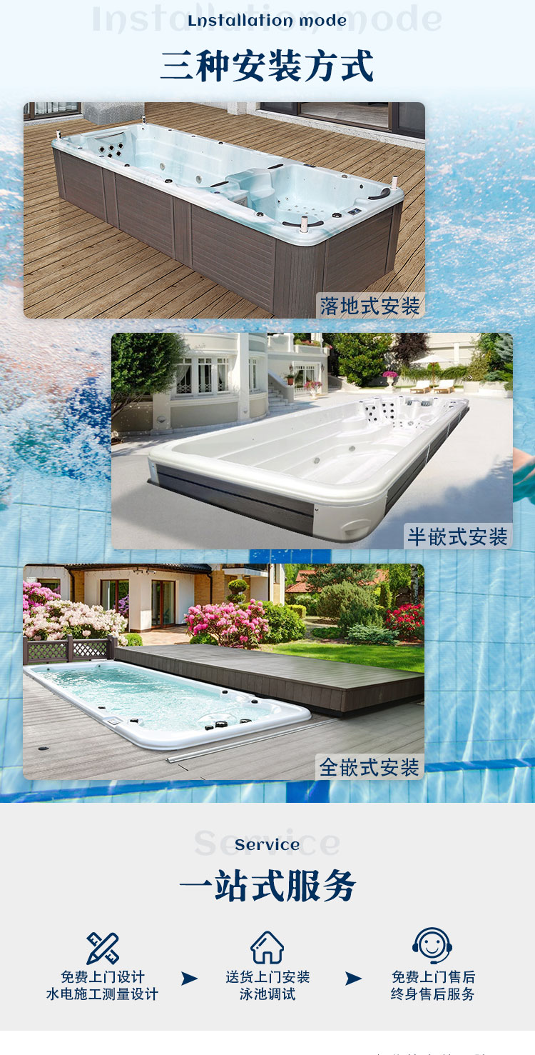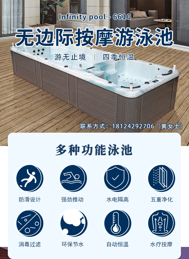 无边际泳池家用户外私人别墅庭院室内外恒温亚克力智能健身游泳池