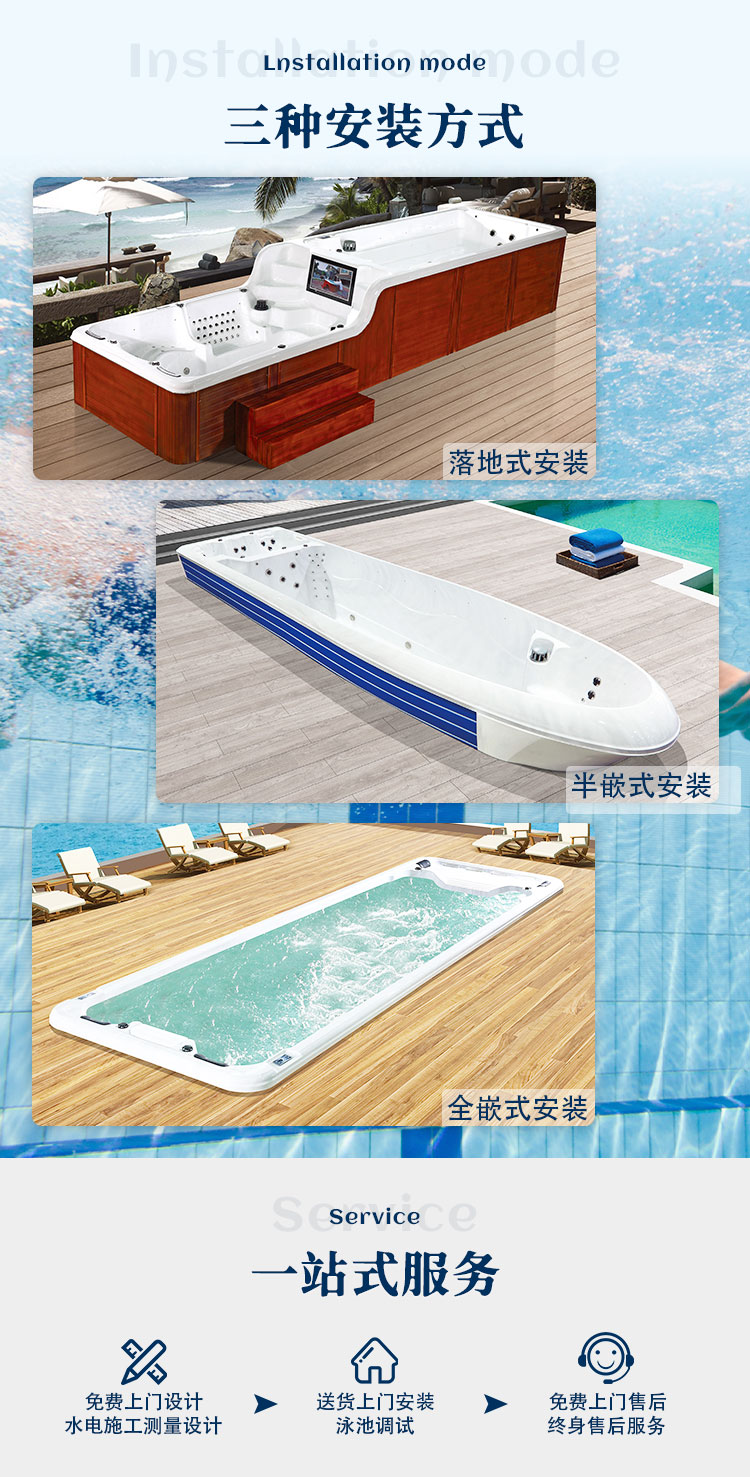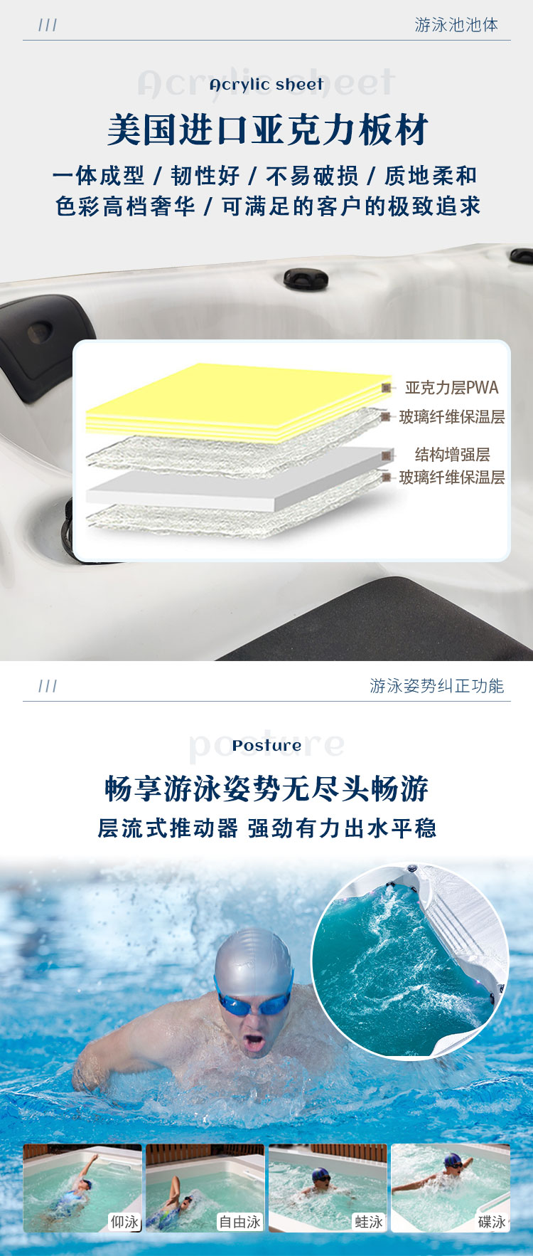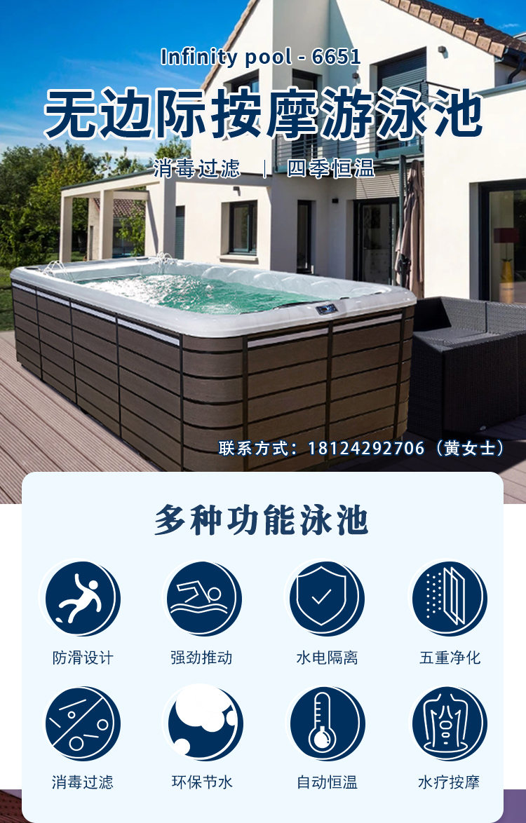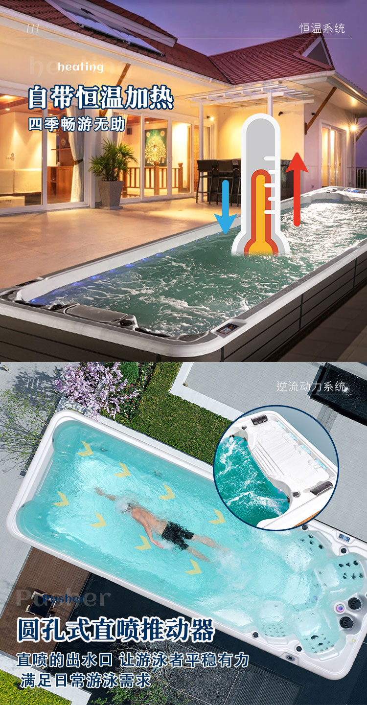 私人别墅无边际游泳池庭院天台室内恒温加热冲浪无尽头亚克力泳池
